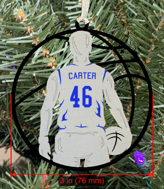 This personalizable ornament is perfect for any basketball fan or player! Adorn your household with a personalized basketball themed ornament, recognizing your child's activity and/or showcasing your love for the sport. A great addition to any holiday decor. Order now and celebrate the joy of basketball!
